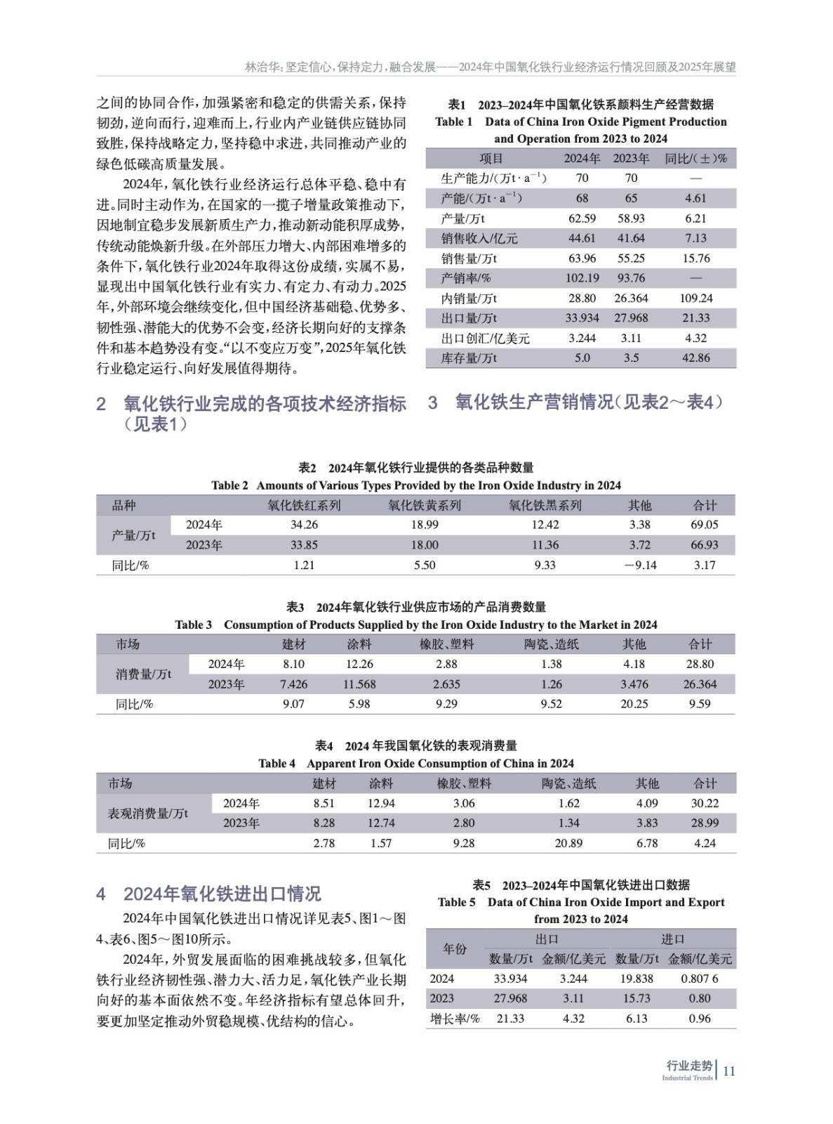 堅定信心,保持定力,融合發展——2024年中國氧化鐵行業經濟運行情況回顧及2025年展望
