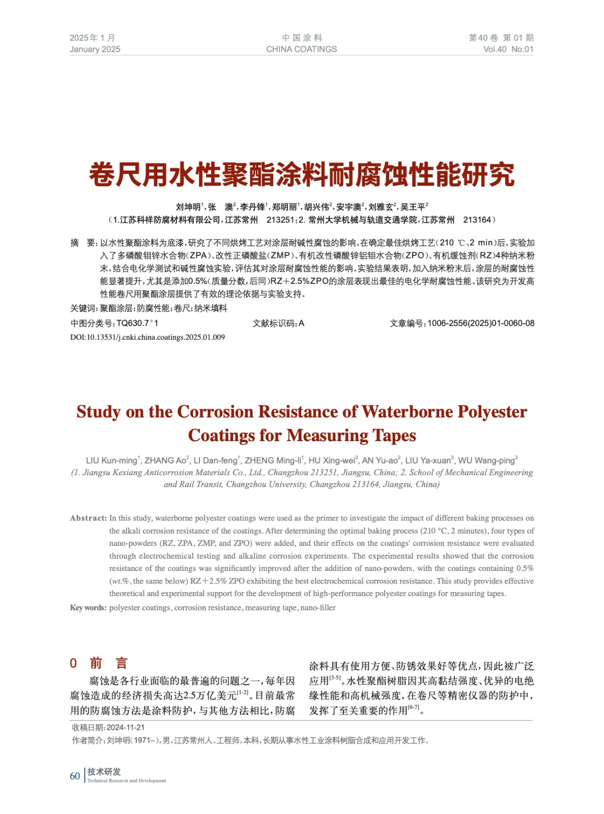 本文系作者@劉坤明,張 澳,李丹鋒,鄭明麗,胡興偉,安宇澳,劉雅玄,吳王平 授權中國涂料網發表,并經中國涂料網編輯,未經允許不得轉載,如需轉載請聯系chinacoatingnet@vip.163.com