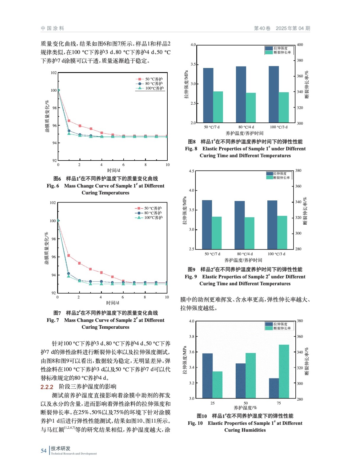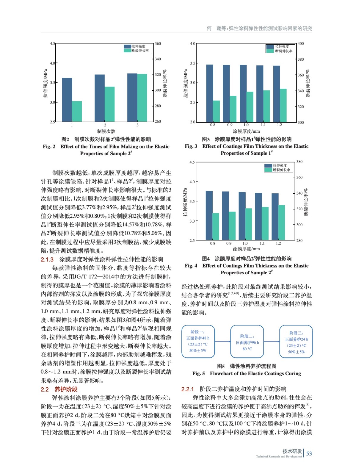 摘要:為了降低彈性涂料測試標(biāo)準(zhǔn)JG/T 172—2014《彈性建筑涂料》中的彈性性能測試誤差,針對制樣、養(yǎng)護(hù)以及測試階段對彈性性能測試影響因素進(jìn)行探究。結(jié)果表明,制樣過程中需選擇合適的基材,嚴(yán)格控制制膜次數(shù)以及成膜厚度;養(yǎng)護(hù)過程中,需控制反面養(yǎng)護(hù)的養(yǎng)護(hù)溫度、養(yǎng)護(hù)時間以及測試前的養(yǎng)護(hù)濕度;測試過程中,需控制剪裁方式以及拉伸速度。針對制樣、養(yǎng)護(hù)以及測試階段進(jìn)行嚴(yán)格控制,即可得到較為準(zhǔn)確的彈性涂料彈性性能測試結(jié)果。