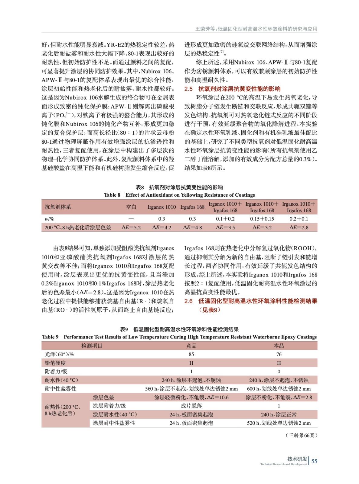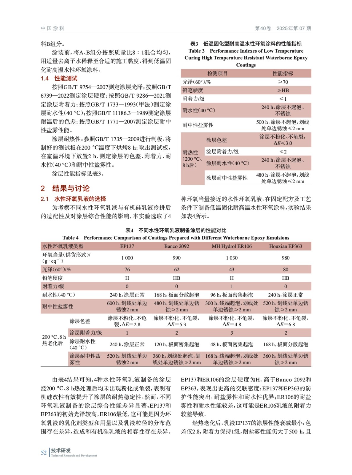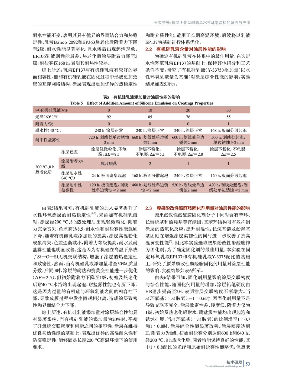 低溫固化型耐高溫水性環氧涂料的研究與應用