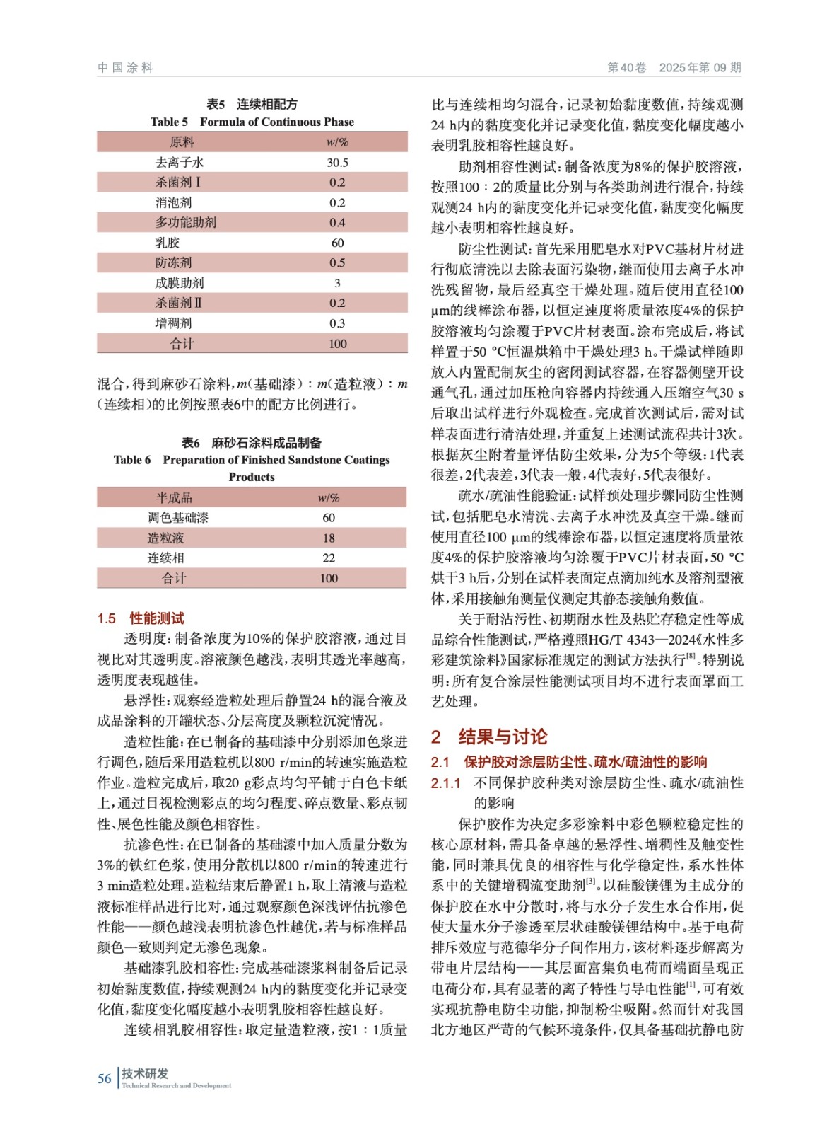 摘要:通過保護膠改性、原材料選擇與配方優化,系統研究了其對多彩麻砂石涂料自清潔性能、初期耐水性、耐候性、熱貯存穩定性等性能的影響,制備了兼具自清潔功能與優異裝飾性能的多彩麻砂石涂料。結果表明,通過對保護膠的改性處理,可在改性后的保護膠中引入疏水基團,有效降低表面能,形成優異的疏水效果,但會對其原有的抗靜電及防塵功能產生一定影響;將未改性保護膠與氟化改性保護膠按質量比2∶1均勻混合后,能夠產生協同作用,在維持保護膠原有的抗靜電與防塵效果的同時,顯著增強其疏水/疏油性能;在基礎漆中,純丙乳膠ROSF-6088與保護膠W-203的組合表現更為優越,在連續相與造粒液中,硅丙乳膠ROSF-7099與多功能保護膠G-203的組合在初期耐水性、耐沾污性、耐候性以及熱貯存穩定性方面均展現出最優性能。基于以上保護膠與乳膠組合所開發的高性能麻砂石涂料,其在自清潔能力、耐沾污性及耐候性等方面表現突出,同時兼具良好的施工適應性與經濟適用性,該研究成果為高性能自清潔外墻涂料的開發提供了創新性技術路徑。