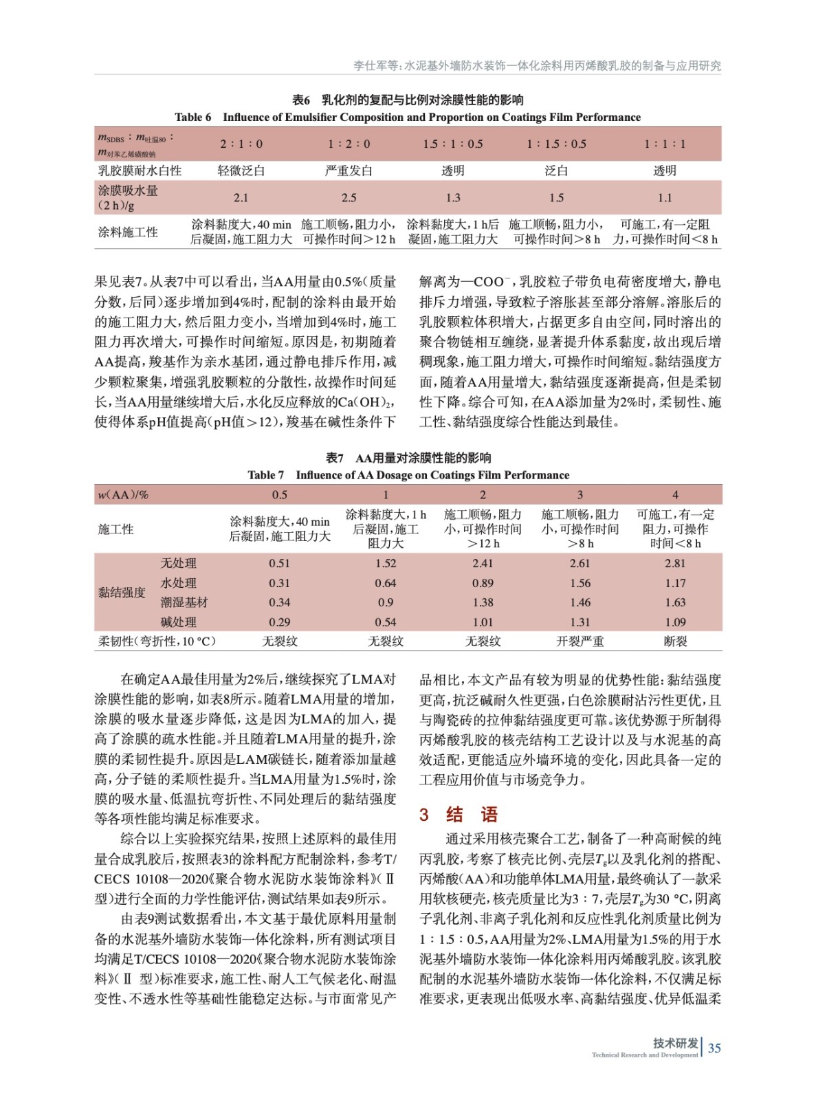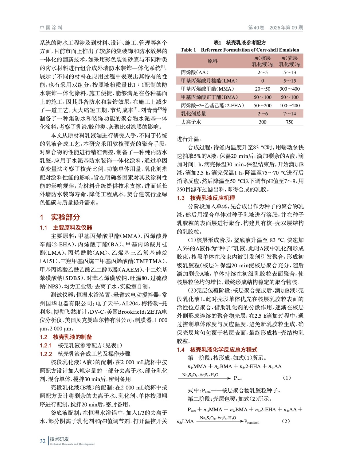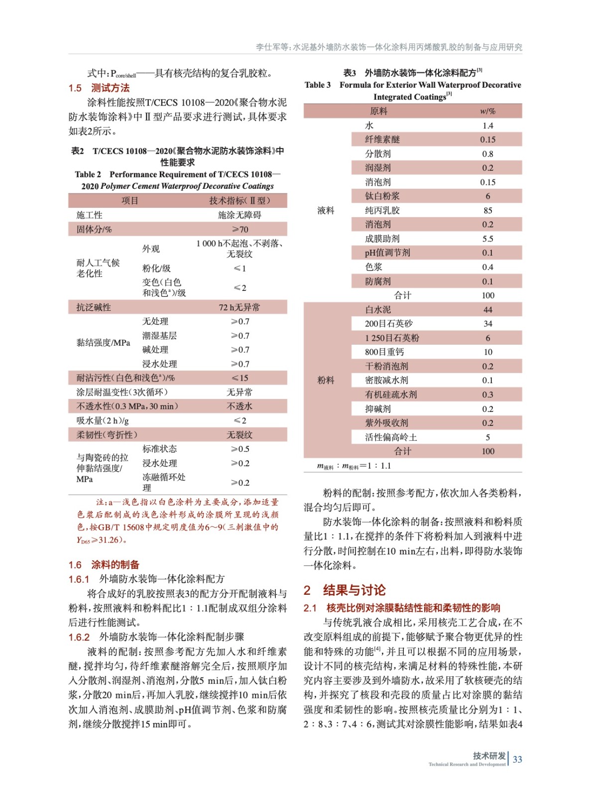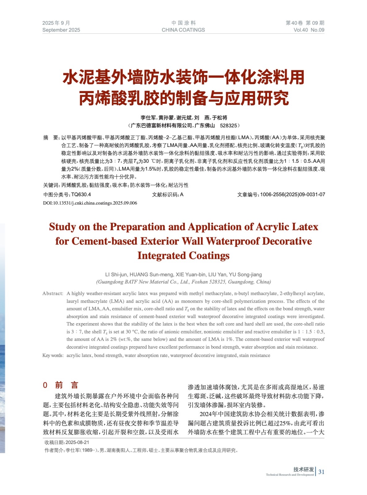 水泥基外墻防水裝飾一體化涂料用丙烯酸乳膠的制備與應(yīng)用研究