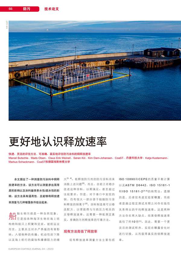 快速、靈活的評(píng)估方法,可準(zhǔn)確、真實(shí)地評(píng)估防污涂料的銅釋放速率