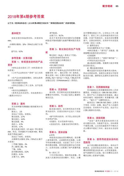2018年第4期參考答案:常規的浸涂涂料
