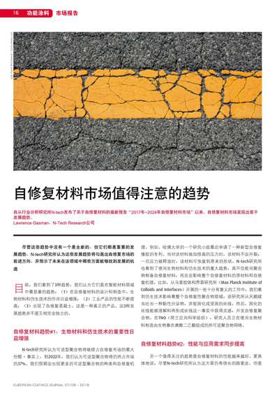 自修復(fù)材料市場值得注意的趨勢