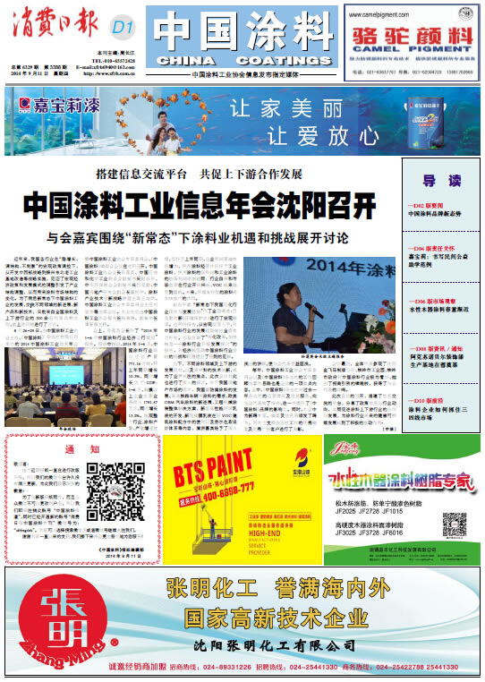 中國涂料報 2014年9月11日 星期四