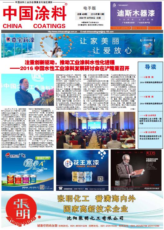 中國涂料報 2016年10月30日