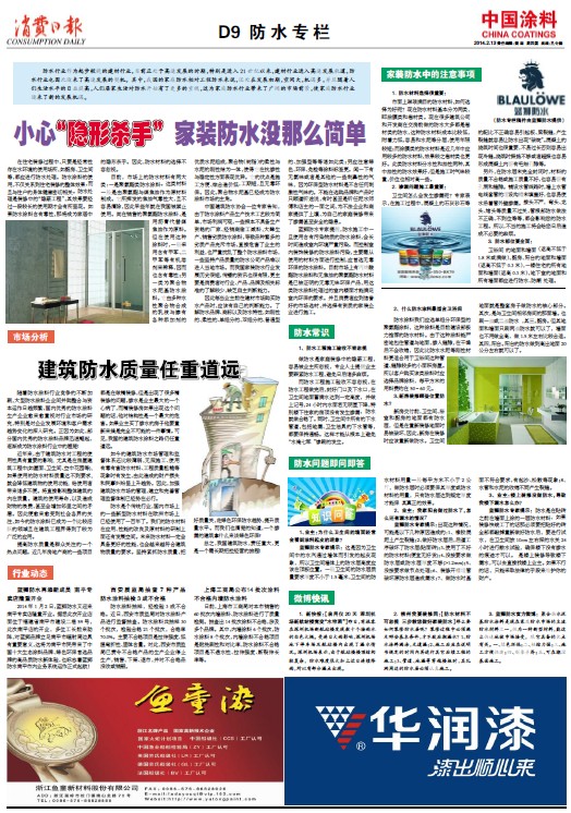 《中國涂料報》(電子版)的一切內容(包括但不限于文字、圖片、PDF、圖表、標志、標識、商標、版面設計、專欄目錄與名稱、內容分類標準以及為讀者提供的任何信息)僅供中國涂料信息網讀者閱讀、學習研究使用,未經中國涂料雜志社有限公司及/或相關權利人書面授權,任何單位及個人不得將《中國涂料報》(電子版)所登載、發布的內容用于商業性目的,包括但不限于轉載、復制、發行、制作光盤、數據庫、觸摸展示等行為方式,或將之在非本站所屬的服務器上作鏡像。否則,中國涂料雜志社有限公司將采取包括但不限于網上公示、向有關部門舉報、訴訟等一切合法手段,追究侵權者的法律責任。