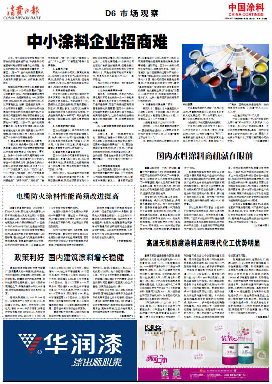 《中國涂料報》(電子版)的一切內容(包括但不限于文字、圖片、PDF、圖表、標志、標識、商標、版面設計、專欄目錄與名稱、內容分類標準以及為讀者提供的任何信息)僅供中國涂料信息網讀者閱讀、學習研究使用,未經中國涂料雜志社有限公司及/或相關權利人書面授權,任何單位及個人不得將《中國涂料報》(電子版)所登載、發布的內容用于商業性目的,包括但不限于轉載、復制、發行、制作光盤、數據庫、觸摸展示等行為方式,或將之在非本站所屬的服務器上作鏡像。否則,中國涂料雜志社有限公司將采取包括但不限于網上公示、向有關部門舉報、訴訟等一切合法手段,追究侵權者的法律責任。