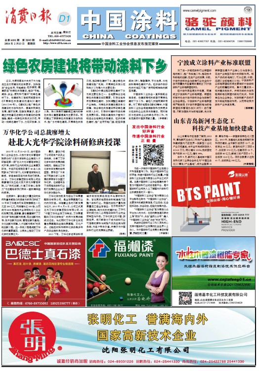 2013 下旬,萬華化學進軍涂料領 域并有效發揮自身技術與原材料優 勢,旨在更好地服務涂料制造商乃至 整個涂料行業。我國的涂料產量和消 費量現已居全球首位,在目前涂料產 業調結構、轉方式的關鍵時刻,萬華化 學的傾力加入必將推動涂料行業的全 面轉型與升級。萬華化學立足中國,放 眼世界,將不斷致力于成為涂料行業 可信賴的原料與樹脂產品供應商與服 務商,為客戶帶來價值,并攜手為中國 涂料行業的發展做出貢獻。 (位冰)